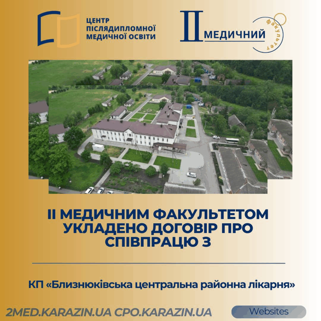 В рамках угоди ІІ медичний факультет та КП «Близнюківська центральна районна лікарня» запланували проведення спільних наукових досліджень, розвиток декількох освітніх проєктів (зокрема, у сфері підготовки в інтернатурі), формування цілісної системи безперервного професійного розвитку медичних працівників лікарні, підвищення кваліфікації та вторинні лікарські спеціалізації для лікарів, спільну участь у грантових проєктах тощо.