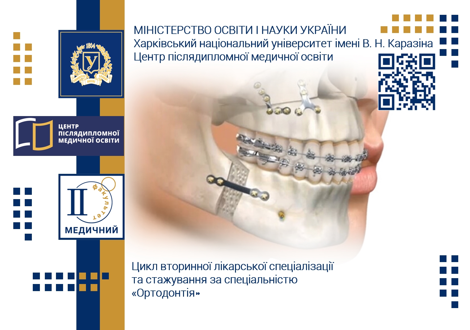 Центр післядипломної медичної освіти Харківського національного університету імені В. Н. Каразіна та Каразінська школа стоматології запрошують слухачів з числа лікарів-стоматологів всіх стоматологічних спеціальностей на цикл вторинної лікарської спеціалізації «Ортодонтія».
