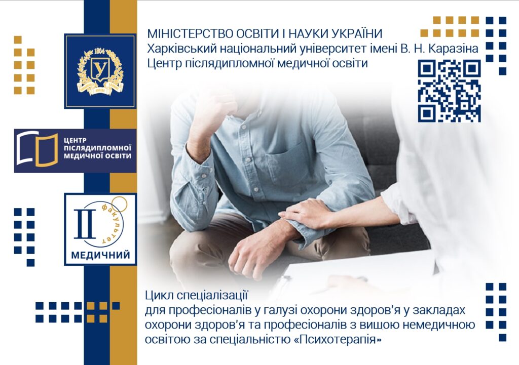 Сертифікатна освітня програма циклу спеціалізації для професіоналів у галузі охорони здоров’я у закладах охорони здоров’я та професіоналів з вищою немедичною освітою за спеціальністю «Психотерапія» для психотерапевтів, які не працювали більше трьох років за цією спеціальністю, спрямована на підвищення професійної кваліфікації фахівців, які працюють у сфері охорони здоров’я та мають вищу немедичну (психологічну) освіту. Програма розроблена відповідно до положень Закону України «Про психічне здоров’я» та сучасних принципів надання психотерапевтичної допомоги, що передбачають мультидисциплінарність, міжсекторальну взаємодію та орієнтацію на права людини.
